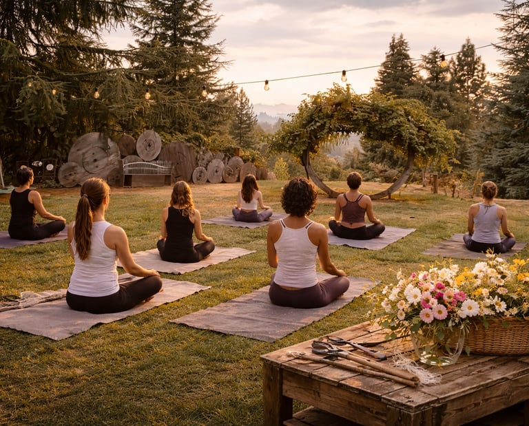 A beautiful morning of yoga, connection, lunch, and an intentional bouquet experience at the winery